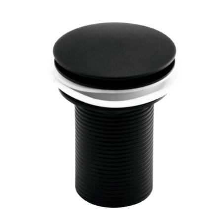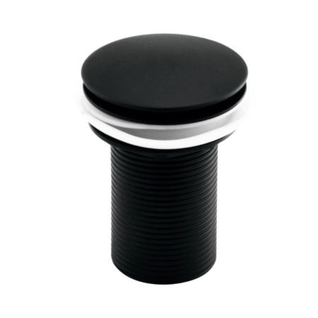 Black-finish Brass pop-up waste coupling for bold interiors.