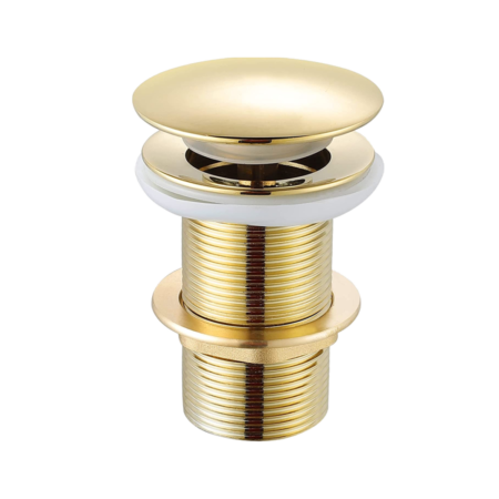Gold-finish pop-up waste coupling designed for luxury bathroom interiors.